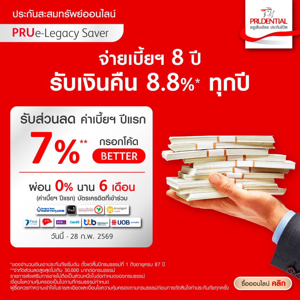 รับเงินคืน 888% ของจำนวนเอาประกันภัยเริ่มต้น เมื่ออายุครบ 88 ปี